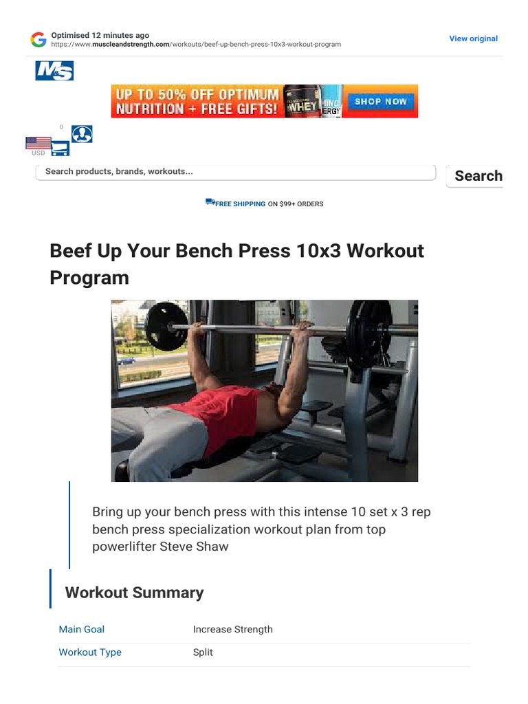 Beef Up Your Bench Press 10x3 Workout Program Muscle Strength