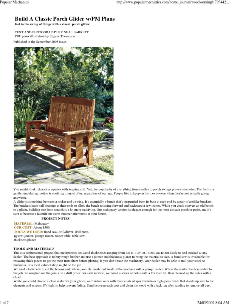 Bench Build A Classic Porch Glider Popmec Woodworking