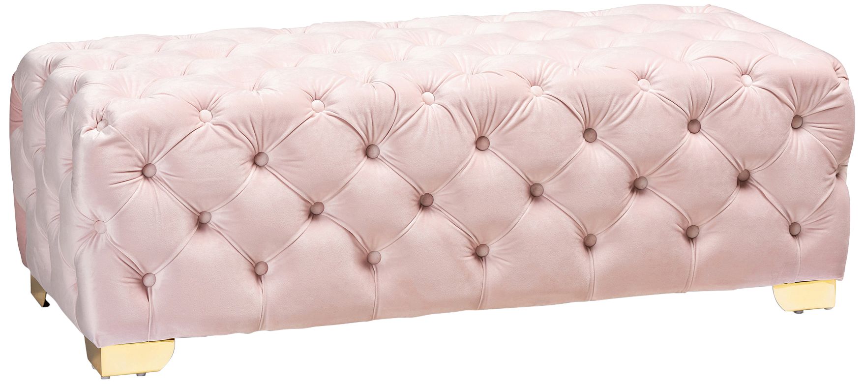 Avara Light Pink Velvet Fabric Button Tufted Bench Ottoman